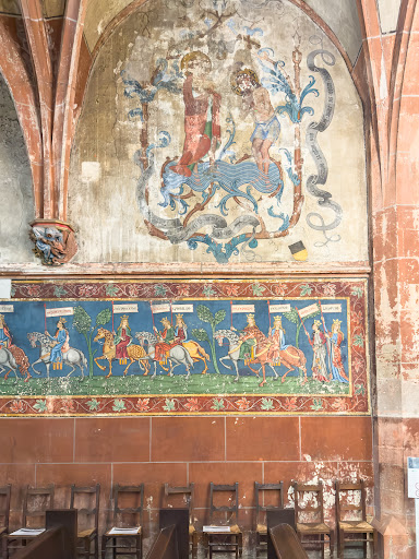 Medieval churches were often richly decorated with colorful wall paintings, though few examples of this survive today. The frescoes at Saint-Pierre-le-Jeune in Strasbourg date from the 14th and 15th centuries and were uncovered in the 19th century.