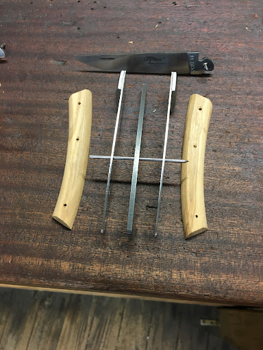 Pour la fête des pères j'ai voulu proposer au papa de mes filles et à nos filles de 4 et 6 ans de fabriquer un couteau Le Thiers. En cherchant sur internet je suis tombée sur l'Atelier le Thiers qui propose à la fois aux adultes et aux enfants de fabriquer un couteau. Nous avons réservé un créneau un mercredi soir et le jour J, 5 min avant l'heure nous nous sommes pointés. Par chance l'atelier est situé proche d'un parking ce qui facilite l'organisation.