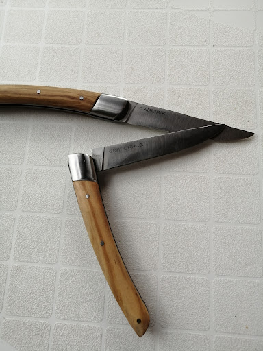 Je n'ai pas pleinement aimé l'expérience et je vous explique pourquoi: Les côtés positifs : bien situé en plein centre ville, près des couteliers, à 2 pas d'un parking couvert et gratuit très bon accueil c'est au profit d'une association de réinsertion Le responsable est super pro, super pédagogue, très sympa (dans mon cas, un homme brun avec un bouc) c'est sans danger, même pour les enfants. Le prix est vraiment pas excessif (37 euros, soit presque 3 fois moins cher qu'en boutique et en plus c'est le votre, fait de vos mains) Ma femme et mes 2 enfants ont beaucoup aimé. ce n'est vraiment pas une arnaque à touristes, c'est vraiment un truc à faire. Les côtés négatifs : si vous êtes un groupe, et que vous cherchez à partager un moment ensemble: oubliez! chaque participant est attribué à un adulte encadrant, donc aucun partage d'expérience avec vos enfants ou amis. Chacun pour soi. Les adultes encadrants sont des adultes en réinsertion professionnelle, donc ce ne sont pas des pros, loin de là! heureusement que le responsable supervise et corrige des erreurs... Perso, j'étais avec une personne pas au top :( Peut-être par bienveillance, on ne nous laisse pas assez la main sur le montage. J'ai été super frustré, car j'aurais vraiment préféré faire tout le montage seul, en suivant un modèle par exemple. Dans ce cas nous avons la chance de travailler sur des ponceuses à bandes mais la contrepartie c'est que c'est quand même très bruyant, pas simple pour écouter les conseils ou discuter... Le manque de professionnalisme se fait ressentir sur le couteau. Quasi invisible pour des non connaisseurs, mais si vous avez l'œil un peu plus expert... les défauts sont un gênants. Je pense que mon avis est entaché par une expérience similaire menée chez Robert David, cela m'avait beaucoup plu pour l'expérience vraiment 'partagée' avec des amis. (Mais chez Robert David, c'est bien plus cher! et vous ne voyez rien de la finition sur ponceuse à bande... c'est un autre genre de frustration). Toutefois, on repart toujours avec un Thiers, le plus beau des couteaux pliants, avec son couteau fait main et gravé sur lame (votre prénom par exemple). Cela...