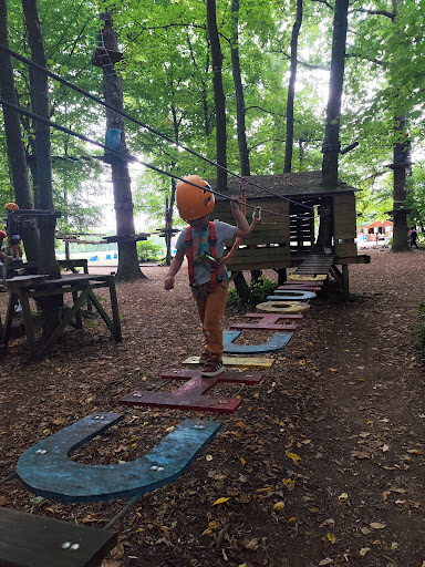 Read moreSuper journée. Nous sommes arrivés a 13h et répartis un peu avant 19h. Nous n avons pas eu de difficultés a trouver. L entrée est inscrite en gros puis le chemin pour y accéder est balisé. Il y a un espace pour garer les voitures sur l herbe a gauche avant d arriver, sinon le parking de la supérette en face. Le parc est situé dans un espace où il y a un espace d informations pour les jeunes et du tennis. A l arrivée il y a des toilettes puis l accueil pour l accrobranche dans une petite maisonnette en bois. Ils prennent le balad pass ce qui réduit l entrée de deux euros. Le monsieur vend des glaces et quelques boissons fraîches. Il y a des tables de pique nique a l orée de la forêt nous pouvons donc emmener nos repas. Nous avons paye 32 euros pour nos enfants de 8 et 10 et quatre parcours étaient disponibles pour eux. Au départ ils ont mis un casque de couleurs et un harnais avec la idée d une membre de l équipe. Ensuite il ont faut une initiation pour apprendre les bases, les mousquetons, la tyrolienne etc. Le personnel est très sympathique tout a fait disponible et réactif. C'est vraiment top. Ils ont orienté les enfants vers les parcours indiqués par des couleurs. Des parcours d un niveau croissant. Ils ont su se débrouiller seuls après les explications des moniteurs. Mon fils a du être sortis d un parcours parce qu'ils ne se sentaient pas a l aise et le moniteur a été tes réactif et d'une patience qui fait plaisir a voir. Puis sur un autre parcours il a pu avoir de l aide et du soutien pour sauter a un endroit. Toujours avec calme et gentillesse. Nous n avons pas été jeté dehors quand l heure approchait de la fermeture. Il n y a avait pas grand monde ce qui faut que les enfants n attendaient pas pour entrer sur le circuit. Les enfants avancent a leur rythme sans pression et il. S'instaure une sorte de fraternité et de soutien entre eux. Deux parcours sont " famille" et enfants et adultes se mêlent. C'est vraiment sympathiques. Des parcours pour les plus petits des trois ans sont dispo ainsi que des parcours pour les experts. Je recommande vivement. L espace est très agréable et le personnel...