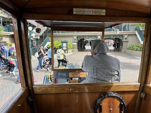 Die Fahrt dauert etwa fünf Minuten und führt von Town Square bis zum Central Plaza vor dem Schloss. Wer einen besonderen Platz möchte, sollte den Doppeldeckerbus versuchen, von dem aus man einen super Blick auf die Main Street hat. Kinder sind besonders begeistert vom Feuerwehrauto und Polizeiwagen, die wie aus einer anderen Zeit wirken.