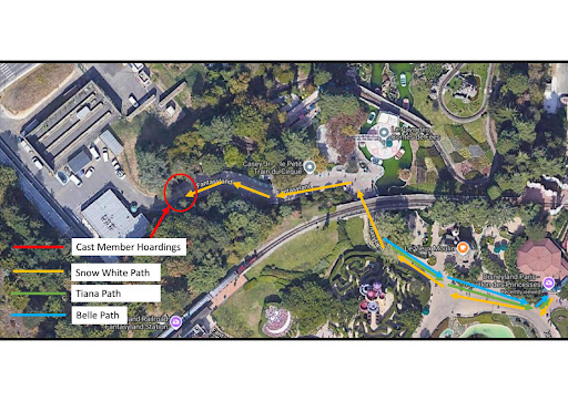Also Pro Tip! and this may save you a) a lot of time and b) said tantrums. Whilst waiting for the queue I saw Tiana arrive, then when the hell was finally over around 1230Hrs we saw Snow White leave the Pavilion (probably for lunch) heading in the same direction I saw Tiana came from. Heading the opposite way to Snow White was Belle. We ended up having to follow Snow White for a bit because our daughter was chasing her (thankfully she wasn't quick enough to bother her). But I noticed that she went to a "cast members only" just west of the Casey Jr Train ride, having seen other princesses come from that direction, I suspect that was where they got ready.