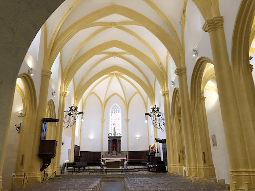 Vers la fin du XVI siècle, une nouvelle église, de style gothique rayonnant et de plan irrégulier, est édifiée. S'orientant vers le sud, elle est attenante à l'ancienne église romane qui en devient le vestibule, appelé narthex. Le chœur est accolé à l'ancienne tour maitresse du rempart, ayant jadis servi de prison et reconvertie jusqu'à l'époque du dernier chantier de restauration en sacristie.