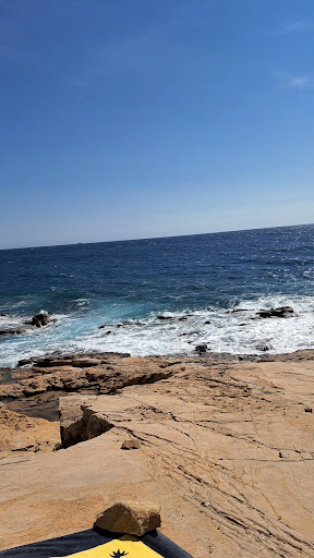 3eme accès par parking du resto Oursinado, devant le portail du resto descendre le muret à droite puis descendre sur la plage, (la première partie sont souvent present des personnes du camping derrière et des pecheurs) il faudra marcher plus à l'est sur une centaine de mètres jusqu'à la crique de gallets (la où commence généralement le no vetement).