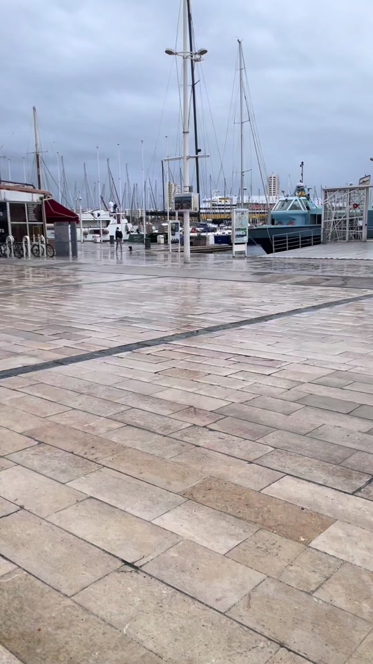 Attention sol du port très glissant si mouillé, très inégal, ça vaut pour les fauteuils roulants mais aussi pour les piétons, voire penché : comme dans la plupart des autres espaces toulonnais (trottoirs, rues piétonnes pavées, places, rues quand les trottoirs ne nous sont pas accessibles : il faut faire vraiment gaffe : car ça plante le fauteuil roulant dans les nombreux trous, avec gros risques de chutes ! Il faudrait que la mairie expérimente en fauteuil roulant sur toutes les rues de la ville, utilise tous les trottoirs où les défauts sont colossaux : (accès des bateaux trop hauts, espace de circulation, pentes trop accentuées, mobilier urbain, poteaux, arbres, poubelles au beau milieu) pour corriger les defauts pour davantage de sécurité, c'est primordial, mais aussi de confort, car on est secoués comme une bouteille d'Orangina, sur pratiquement...