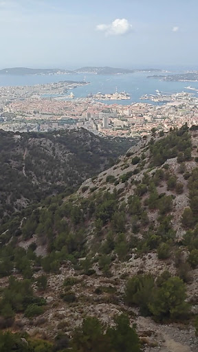 My recommendation is to go to the tourist office and buy a return ticket for the cable car for 7,5 euro, which includes also public transportation in Toulon for a day (includes also the boats that are part of public transportation: 8, 18 and 28, which you can use to go to Les Sablettes, Saint-Mandrier-sur-Mer and Port de La Seyne-sur-Mer). Since I arrived at the tourist office before 10am, when the cable car opens, the guy working there told me to wait until 10, so he can call them and make sure that the cable car is running, because it depends on the weather. So I returned at the tourist office at 10, bought the ticket and then took bus 40 (unfortunately on Sunday and holidays it runs only once per hour) to the cable car station. When I got up on the mountain, I wasn't sure where the viewpoint is and decided to follow the signs to the viewpoint in the south. You can go there either by following the road or through the forest (the path through the forest is shorter, but a bit more difficult). Unfortunately, there was some fog that day and I wasn't able to get the best view, but at least I took advantage of the ticket and used the public boats to visit the other places that I mentioned above. When I returned from the mountain, there was no bus coming anytime soon and I walked back to the city (took me about 25 min). Up there is also a war memorial, which has a viewpoint, but you have to pay the entrance fee (5 euros I think) and there is also a cafe, right next to the cable car station, which...