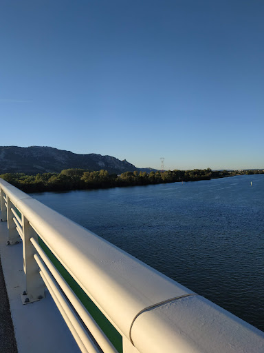 Pont très pratique, avec des pistes cyclables complètement séparées des voitures avec un muret en béton. Les cyclistes peuvent mieux profiter d'une belle vue sur le port de l'Epervière (le plus grand port de plaisance fluvial en France), la tour de Soyons, l'Ardèche avec son château de Crussol, et le Vercors avec au sud Les Trois...