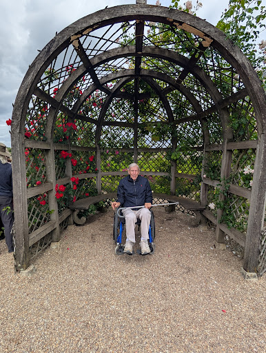 Villandry is absolutely beautiful in every way. The generations of family that have maintained the estate as well as added to it and renovated it to make it what it is today is no small feat! I wish more of the chateaus and castles in other countries were treated so well. 🥰 I recommend the video at the beginning to really give the history and changes to the gardens over time as it tells you a lot about what you'll be seeing as you progress through the property. They do have a handicapped accessible path through the gardens in a wheelchair, and they also provide wheelchairs that have thicker wheels for the gravel and cobblestones. The cobblestones are HARD with the wheelchair, but I did find it easier to go backwards on them (probably the bigger wheels that help). I took my father who's 94 and used both a cane most of the time and wheelchair for longer journeys and we made out well. There are a few major inclines that are cobblestone that are HARD to get up (an Irish man helped me the one time and it was great!) but totally worth it for the view over the gardens so you can really see them fully. Also, the 2nd incline brings you in the back to the greenhouses as well as the English gardens, reflecting pond, a small childrens garden area, and the herb gardens where you can pluck a piece of mint and really smell and taste where you are. There are 50 gardeners on site attending to the flower beds and it's quite the sight to see with all the different colors and things that are growing everywhere 💙 My father painted these gardens from a magazine for my wedding 9 years ago and this is one of his bucket list places he wanted to see in real life, so happy we came, wish I could stay for the garden with lights party they throw! Also outside the gates is a restaurant as well as a food truck option and both are delicious and serve traditional French things: quiche, crepe, croque monsieur, etc. By far my new favorite Chateau in France and hope to visit in other seasons as the gardens change. Cheers to the family behind giving Villandry its glory back and...