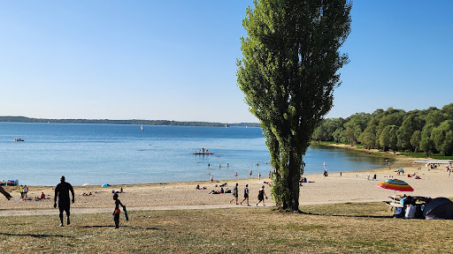 Read moreSuper endroit pour se poser en famille. Grand parking gratuit. Attention il peut être plein des le début de l après midi. C est agréable d avoir la plage de sable et de l herbe. Il y a des arbres par endroit pour l ombre . Plusieurs activités nautiques. Paddle. Pédalo. Voile. Aquapark vraiment sympa. Baignade surveillée. Port de plaisance. Toilettes publiques gratuit ( pourrait être plus propre et sans papier mais c est déjà mieux qu ailleurs)