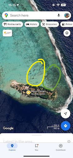 Read moreHad an amazing morning here. The coral reef on the northeast side is one of the best weâve seen in Polynesia for snorkelling so far. Also did scuba diving in the deep pass in the southeast which was great. I have circled a screenshot in: Green for amazing snorkelling and amazing coral gardens, and yellow for good snorkelling with less current. The water clarity was really good. We saw clownfish, porcupine fish, lots of huge triggerfish, some reef sharks, lionfish and loads of colourful reef fish. The beach has quite a bit of broken coral so isnât the best for sunbathing but is still white. There are plenty of picnic benches so take lunch with you. You can get here by boat from the port Uturoa (I believe around 2500 return), but we took kayaks and went to opposite Sup Tepua shop, and kayaked 20 minutes (exact) to the island. Just donât go on a...