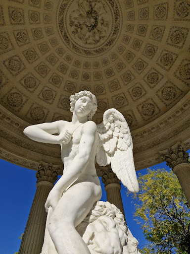 Frumos, romantic...Templul Iubirii este situat pe o insulă artificială în centrul unui lac artificial și este un loc liniștit unde puteți sta puțin și admira frumusețea acestei părți ascunse a grădinilor Versailles...Templul este un loc de legendă și superstiție...a fost construit în 1778 de Richard Mique, arhitectul curții și unul dintre favoriții reginei Maria Antoaneta...designul său este neoclasic, cu 12 coloane care susțin o cupolă din marmură albă...în centrul acestui mic pavilion se află o copie a controversatei statui a lui Bouchardon, „Cupidon făurind un arc din măciuca lui Hercule”...conform legendei, Maria Antoaneta a construit templul în timpul primei sarcini, la șapte ani după căsătoria cu regele Ludovic al XVI-lea, deoarece se temea că nu va putea să-și ducă copilul la termen...Templul, înălțat în cinstea zeilor păgâni, a șocat curtea, iar aceștia au dat vina pe practicile „necreștine” ale reginei pentru nașterea unei fetițe...în ciuda dezaprobării lor, Maria Antoaneta a continuat să viziteze templul, unde s-a rugat pentru un fiu...cei trei copii ai săi care au urmat au avut sfârșituri triste în ciuda rugăciunilor ei: prințul moștenitor, născut în 1781, a murit de tuberculoză în 1789...al treilea copil al Mariei-Antoinette, al doilea fiu al ei, născut în 1785, a murit în închisoare în 1795, iar al patrulea copil al ei, o fiică, născută în 1786, a murit la un an după nașterea ei...Templul este vizitat de mii de turiști în fiecare an, dar este considerat ghinionist ca tinerele femei să atingă coloanele sau statuia lui Cupidon...
