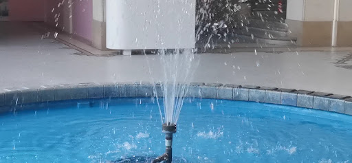 Sur la droite, on trouvera plusieurs commerces (fermés le lundi) et sur la gauche une magnifique fontaine, fresques murales et plafond décorés avec les motifs d'époques.
