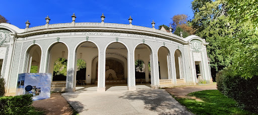 The layout of this park, which occupies part of the former convent enclosure, bears the signature landscape of the Second Empire, with its steep paths. Originally, the Allier River reached the foot of the rock; but the deposit of alluvium and the construction of the dike finally allowed the development of the spring's surroundings. It was only in 1908 that the park took on its current appearance with the development of a new refreshment bar which allowed the grouping of the various emergences of the spring drilled between 1857 and 1905. The architect Lucien Woog then designed a vast hall with an elliptical plan, in the style of the 18th century French. The arrangement of the spring itself, under its crystal and copper bell surrounded by pink marble, is the last testimony to the interior appearance of the hall of...