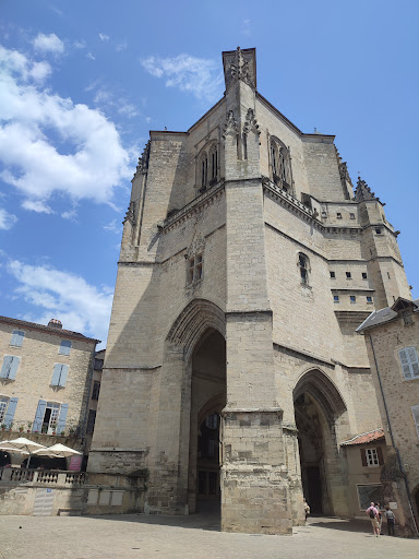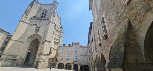 Read moreUn lieu où les forces du sacré ( et du païen) se rencontrent. Le café qui surplombe la place de la collégiale est sympa y le salers tonic frais vaut le coup. Tous les jeudi matin qu'il pleuve, vente, gèle ou encore qu'il fasse un soleil de plomb, se tiennent les stands des commerçants des alentours, de la jeune mamette au fromager ( de Saint Cirq Lapopie), des sœurs fromagères à l'artisan tisanière, du poissonnier au volailler... Un régal qui se poursuit une rue latérale plus haut, sur le flanc gauche en partant du parvis de la Collégiale, avec les Halles où fleurent bon olives et houmous, ail confit et saucissons. Seul grand absent de ces festivités hautes en couleurs et parfums, le célèbre gâteau à la broche. Peu d'artisans le vendent et le pâtissier renommé de Villefranche le...