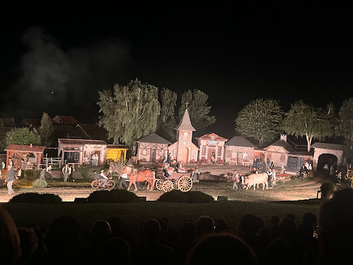Read moreCe 4 août, nous avons assisté à un spectacle remarquable, de part la multitude des scènes élaborées avec précision pour retracer le passé, également par ces fresques humaines de mime statique qui étaient incroyables ! Le récit est touchant et bien sûr poétique. Le choix musical parfait. Un grand bravo à cette troupe de comédiens amateurs ! L’organisation est sans faille avec encore de nombreux bénévoles extrêmement gentils. Le départ du public est très bien orchestré ainsi pas de bousculade et de stress dans les longues files pour rejoindre le parking ; encore bravo et merci pour ce beau spectacle avec beaucoup d’animaux, eux-mêmes acteurs enchanteurs, ont ajouté à la palette des émotions celle de la joie, aux petits comme aux grands… Un beau feu d’artifice clôture la soirée. Il faut voir...