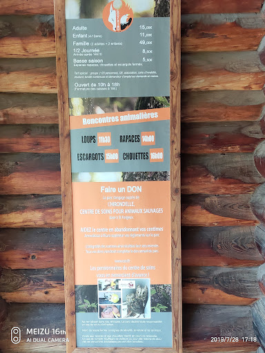 Read moreUne expérience intéressante, dans un site naturel agréable, essentiellement forestier. J'ai apprécié le nourrissage des loups, la "rencontre" avec les escargots et le spectacle de démonstration des rapaces nocturnes (hiboux et chouettes): des explications claires, avec une volonté de pédagogie à destination du public. Les scolaires (écoles maternelles et primaires) ne sont pas oubliés, avec des sentiers et des activités spécifiques au coeur de la forêt). Mais le concept demanderait à être approfondi. Le parc est, certes, en cours d'extension, notamment avec l'ouverture de jeux d'enfants et l'aménagement de la "Colline du Loup blanc" (divers enclos pour rapaces, dans un vaste espace dédié aux loups arctiques, création d'un enclos pour marmottes). Toutefois, la visite du parc peut se faire assez aisément en une demi-journée. Espérons que les projets d'extension se poursuivront, avec la création de nouveaux enclos (nouvelles espèces de rapaces, loups noirs, lycaons, coyotes, chacals...). Pourquoi le parc ne renforcerait-il pas sa spécialisation dans les différentes espèces de loups (un animal passionnant à étudier...) et de rapaces ? Des prix raisonnables (voir le site Internet). Les chemins du parc sont pentus et caillouteux (prévoir des chaussures adaptées). Le parc me semble peu adapté aux très jeunes enfants (moins de 5 ans). On peut pique-niquer dans le parc, même si, en haute saison, les tables sont prises d'assaut rapidement. A l'entrée, un chalet en rondins abrite une (modeste) boutique, un petit coin lectures pour enfants et jeux de société, ainsi qu'un espace restauration (menus "sur le pouce",...