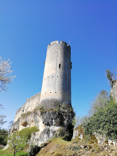 Read moreSehens- und besuchenswerte Burgruine auf einem engen Felsengipfel. Die Lage der Burg auf den langen und engen Felsen ist wirklich toll, die Aussicht auf das umliegende Tal entsprechend. Der Aufstieg zur Burg durch eine leicht erweiterte Höhle mit einer engen Wendeltreppe war großartig. Durch diesen Einstieg allein ist ein Besuch nur Personen zu raten, die gut unregelmäßige und ausgetretene Stufen steigen können. Der gut erhaltene, voll begehbare und enorm hoch wirkende Bergfried/Donjon mit einer Bauhöhe von über 20 Metern (Gesamthöhe somit wohl etwa 70 Meter) ist neben dem Einstieg und der Aussicht sicherlich der Höhepunkt. Auf der Burg beschreiben zahlreiche Tafeln auf französisch und deutsch den Bau anschaulich. Der Eintritt von 5€ (Erwachsene (Juli 2021)) war aus unserer Sicht gerechtfertigt, der Besuch absolut...