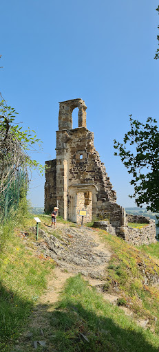 Alors ,pour le contexte . Pleine semaine , nous étions seul . Et il pleuvait . Un monsieur en bas qui coupait l herbe . Aucun bonjour malgres notre salutation. Bon pas grave nous décidons de monter voir les ruines de ce mur . En arrivant au sommet nous profitions de la vue quand nous nous sentimes épié . En effet en contrebas le monsieur qui s occupe dès basses besognes je présume nous surveillait à distance . Dès qu'il a vu qu on le regarder et sous une pluie battante ,il a sortit son téléphone pour le regarder .. Je ne savais pas qu'il fallait montrer pâte blanche pour voir une ruine . Être surveiller de la sorte alors que très certainement ils ont du toucher de l argent publique pour restaurer et entretenir ,est tout bonnement ridicule . Un flicaillon régional comme souvent . Du coup ni une ni deux sans avoir tout vu nous repartirons et ne reviendrons jamais ici . A...