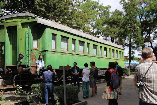 To one side of the museum is Stalin's personal railway carriage. The green Pullman carriage, which is armour plated and weighs 83 tons, was used by Stalin from 1941 onwards, including his attendances at the Yalta Conference and the Tehran Conference. It was sent to the museum on being recovered from the railway yards...