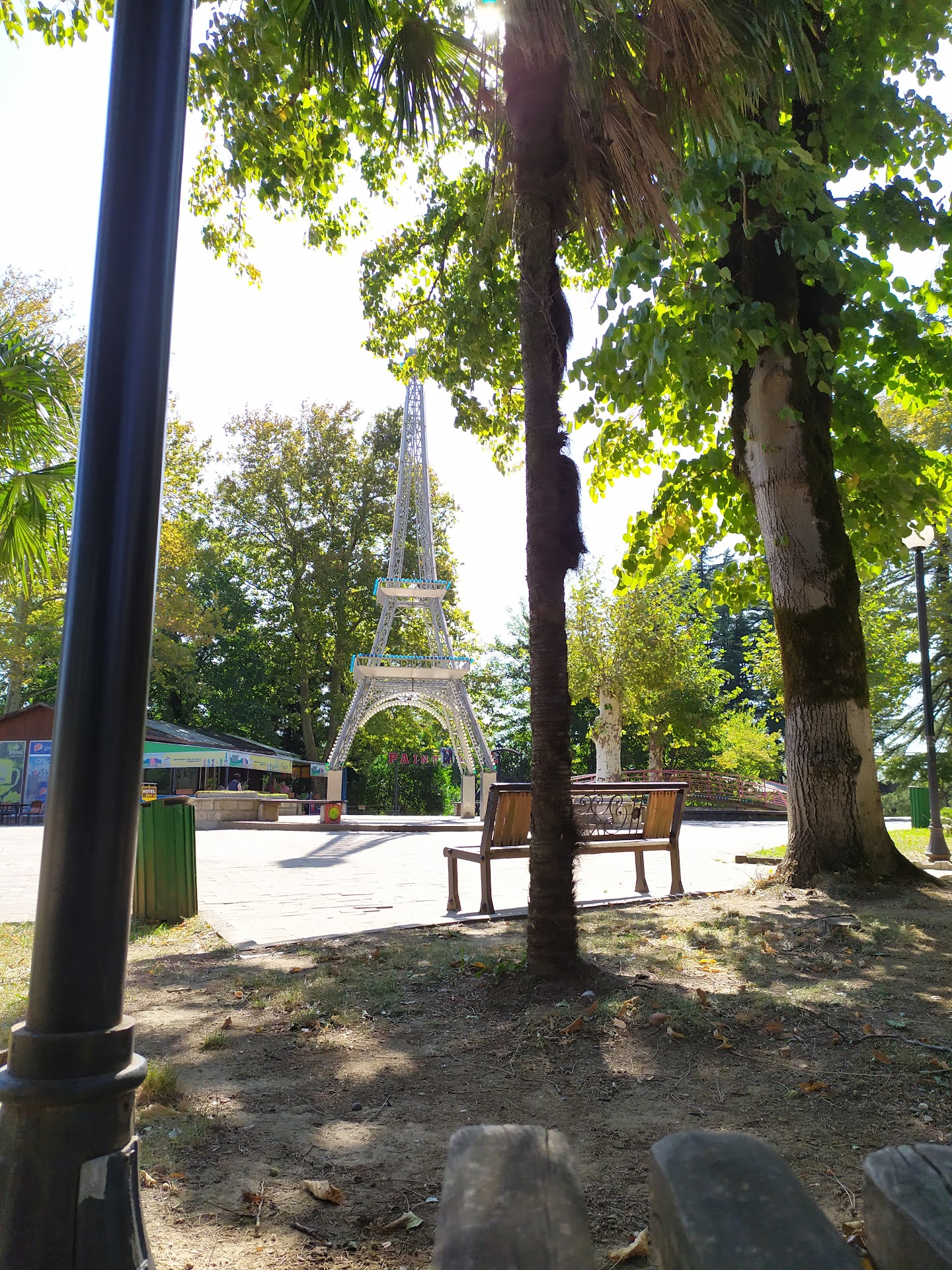 "The day we went to Paris, Chernobyl, Arabia and Feather-Duster-Unicorn Land". Continuing our adventures in Kutaisi, we jumped in the little yellow cable car (jumped= gingerly stepped) and whoosh! After some unsupervised and uneducated kerfuffle where we and another foreigner repeatedly stepped in out and out of the car in a slapstick fashion in case the car was magic and would sense willing passengers and then begin to move (FYI this was NOT effective), we were on our way, floating up the hill like sweaty sardines in a little flying submarine, or something similar. We stepped off and BAM! We were in a run down but quaint little Soviet/90s theme park. It was the first time I'd seen the Eiffel tower (my partner refused to propose to me there but did allow a selfie, so that's a win). It is as good as they tell us. Then onto the Chernobyl Eye as we affectionately refer to her as. Our little colourful bubble floated slowly around the wheel in a wonderfully carefree way. The view was legit great and the breeze was gorgeous on our sweaty bods. Loved it. 10/10 will go back at night for the full experience. Then we wandered past a merry-go-round, with horses sporting stunning feather duster headpieces. We discovered a camel and a Volga (Волга) car parked nearby added to the Soviet style richness. After all this exploration, we sat on benches looking at the view and taking various videos of the cable cars going up and down in both time lapse and slow mo! Fascinating stuff. It was an enjoyable afternoon. The Chernobyl Eye was the highlight, the park is definitely worth a visit for so...