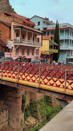 Romantic Symbol in the Heart of Old Tbilisi This small pedestrian bridge is covered with colorful padlocks. Couples write their names on a lock, attach it to the bridge, and throw the key into the river. It’s a symbol of forever love.