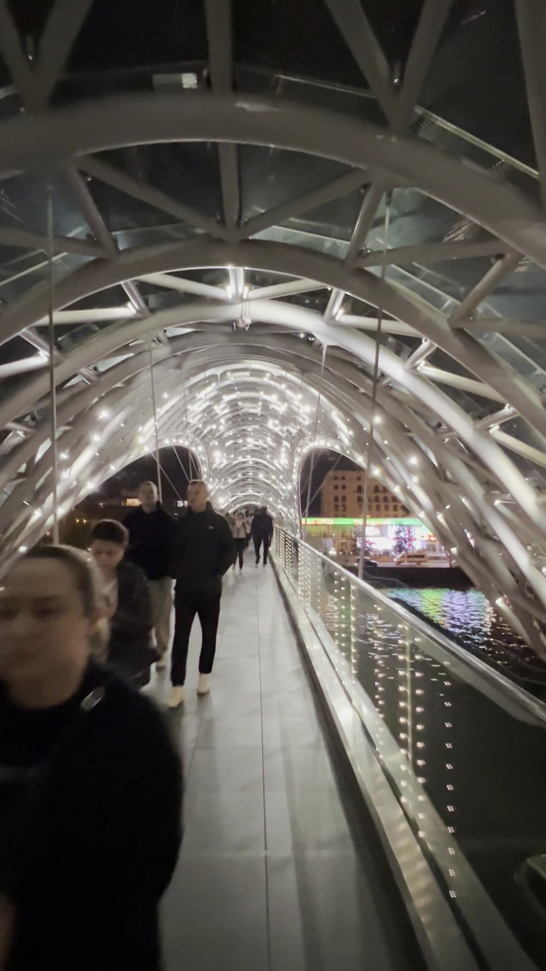 From the moment I set foot on the Bridge of Peace, I was captivated by its unique and modern design. The sleek, glass-and-steel structure creates a stunning visual contrast against the historical backdrop of Tbilisi's Old Town. The bridge's curvaceous form and illuminated glass panels make it a true work of art, both day and night.