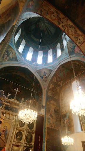 Read moreАрмянин знатного рода (его иногда называют князем) Умек, живший в городе Карина (сейчас это Эрзрум) какого-то там сельджукского эмирата румского султаната, в 1242 году после захвата города грузинско-армянско-монгольской армией переселился в Тбилиси. Там он прожил до 1267 года и умер. Вот этот Умек и построил храм Сурб Геворг около 1251 года. Первоначальный облик храма сильно изменился из-за последующих перестроек. В 15 веке в западной части церкви была надстроена колокольня с ротондой. В 15-16 веках в Сурб Геворге находилась резиденция епископа Ахпатской епархии (из монастыря Ахпат). В 1616 году персидских шах Аббас I во главе персидской армии захватил Тбилиси и весь квартал от Майдана до бань он отдал мусульманам. Церковь Сурб Геворг в связи с этим перестала быть действующей. Длительный период времени церковь пребывала в запустении. Вероятно, только в 1770-х годах в правление царя Ираклия II храм был возвращен армянской церкви и вновь стал действующим. В 1779 году храм восстановили. В 1795 году при захвате и разгроме Тбилиси персидскими войсками под руководством шаха Ага-Мухаммад-Хана церковь Сурб Геворг была разграблена и сожжена изнутри, но внешний её вид не пострадал. При входе в храм персидские солдаты зарубили знаменитого армянского поэта Саят-Нова. Вроде бы он был похоронен у северной стены, где сейчас находится мраморный мемориал, символизирующий его могилу (справа от входа). Хотя армяне в Армении придерживаются другой версии на счет смерти Саят-Новы. Сейчас две трети всех фресок храма относятся к 18 веку. Считается, что в их создании участвовал придворный художник царя тбилисский армянин Овнатан Оватанян (1730-1801) и его сын Мкртум. Фрески Оватанянов представляют собой в основном изображения историй из Ветхого Завета. Последняя треть вроде бы сохранилась от ранних эпох, предположительно от 15 века. Интересно, что в церкви есть иконостас (четырех или пяти ярусный), что для армянских церквей является большой редкостью. Алтарь установлен перед иконостасом и встроен в него. Нал алтарем установлена картина-икона с изображением Богоматери с младенцем, причем она встроена в иконостас. Во дворе перед северной стеной церкви Сурб Геворг находится несколько захоронений. В 1938 году был снесен Ванкский собор, находившийся в Тбилиси недалеко от церкви Кашвети. Прежде он выполнял функцию пантеона армянских деятелей в Грузии. Часть могил были перенесены вроде бы в 1977 году во двор церкви Сурб Геворг. Справа от входа в церковь Сурб Геворк, у северной стены находится мемориал Саят-Нове, Это мраморное сооружение было возведено в советское время в 1920-х годах и символизирует место, на котором предположительно Саят-Нова был убит персами. Слева от входа в церковь, крайняя, у угла церкви, находится каменная плита с несколькими надписями. Это общая могила нескольких перенесённых из Ванкского собора захоронений. Одно из имен на плите Габриэл Константинович Айвазовский (Айвазян) (1812-1880) или архиепископ Гавриил. Это младший брат известного художника Ивана Константиновича Айвазовского. Он приехал в Тифлис в 1879 году и умер через год. Также слева от входа в церковь, но не у стены, а немного в отдалении от нее, за двумя хачкарами, находятся четыре надгробные плиты. Все похороненные под ними были армянами, генералами, участниками русско-турецкой войне 1877-1878 года и лично з