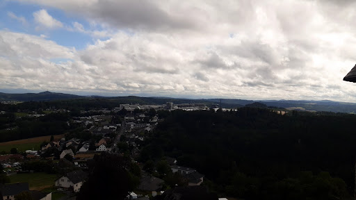 Nürburg castle is a romantic view point over the area. It had been in ruins for several hundred years - and inspires for any creative entrepreneur! It'd a pity it simply is a ruin, as it would make a great venue. The place has been well labeled, though, both in German, English and French and blind writing. The entrance cost 3 Euros per person. The tower offers an amazing view- if you dare to climb up the free-hanging stairs across two levels! Nothing for soft souls afraid of height or steps. It's worthwhile for sure! The hike up to the castle goes up a steep hill, so wearing good footwear and maybe bringing your hiking stick are advisable, though not mandatory. There are toilets on top, but they were closed when we went there. You can easily see the Nürburg ring track and hear the cars roaring during the race. Definitely a must-see in the area, for a leisure hour after or...