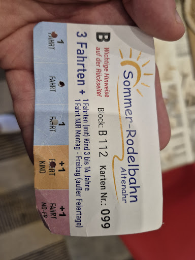 Read moreWe went on a busy August bank holiday weekend. Queue was quite long but worth the wait.The ticket price was a very reasonable 14 Euro for 4 runs (3 + 1 extra, provided a child rides with you - bit confusing). I didn't realise the price was per cart, not per person, so bought 28 Euros worth, or 8 runs if sharing a cart (max combined weight 150kgs, so an adult male and teenager is OK). We just did 4 runs in the end and gave the remaining 4 away. Once in a cart you can stay on until all of your tickets are stamped. Good Saloon Pub in nearby town for lunch. You can apparently do the full run without braking if you dare. Little risk of over-turning, very stable. Worth the 1 hour drive...