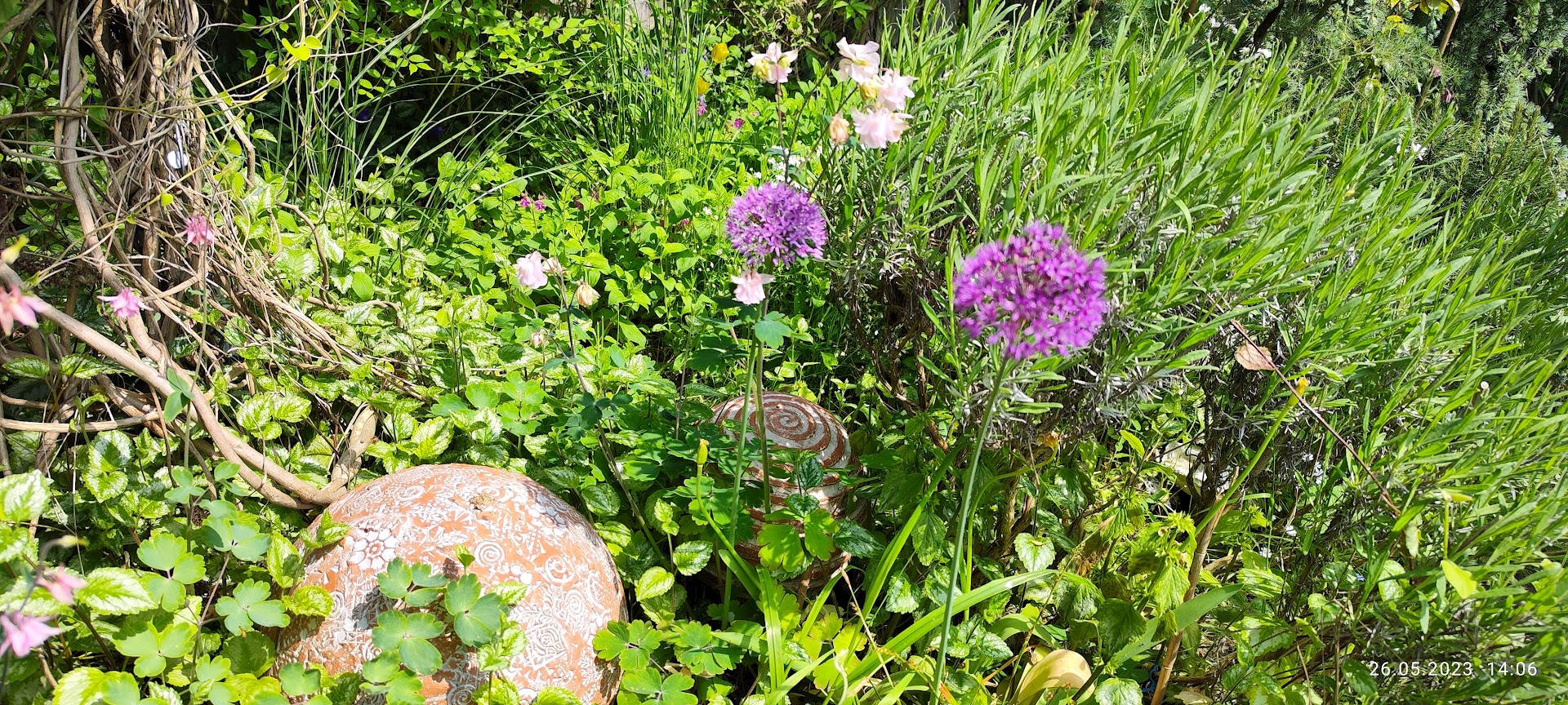 Ein sehenswerter idyllischer alter Privat-Landhof mit reizvoller Usedom-Gemälde-Ausstellung in einem witzigen winzigen Hühnerstall und wild-romantischem Feng-Shui-Garten, dem man die liebevolle und detailreiche Gestaltung ansieht und der ein völlig anderes Gartengefühl als deutsche Nutzgärten auslöst - Naturverbundenheit. ob bei einem Rundgang oder auf der überdachten Terrasse, Entspannung pur und Vielfalt wird geboten. Wer hier allerdings im November volle Blütenpracht erwartet hat keine Ahnung und sollte seine Bewertung überdenken. Ein ähnliches Kleinod findet sich nur wenige Fahrrad-Minuten weiter im "Blauen Garten" auf dem Töpfer-Hof in Bannemin, von dem aus ich gerade schreibe. Herzliche Grüße an die Malerin in...
