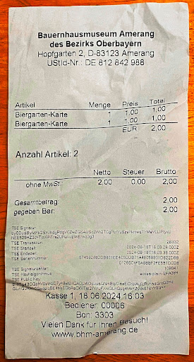Und das Beste ist, man muss zwar durch den Kassenbereich durchgehen, um nur ins Museumsstüberl zu gelangen, aber man braucht nicht den vollen Eintrittspreis zahlen, sondern es gibt eine „Biergartenkarte“ für einen Euro. Und dieser Euro wird dann bei Vorlage von der sehr netten Wirtin sogar noch erstattet.