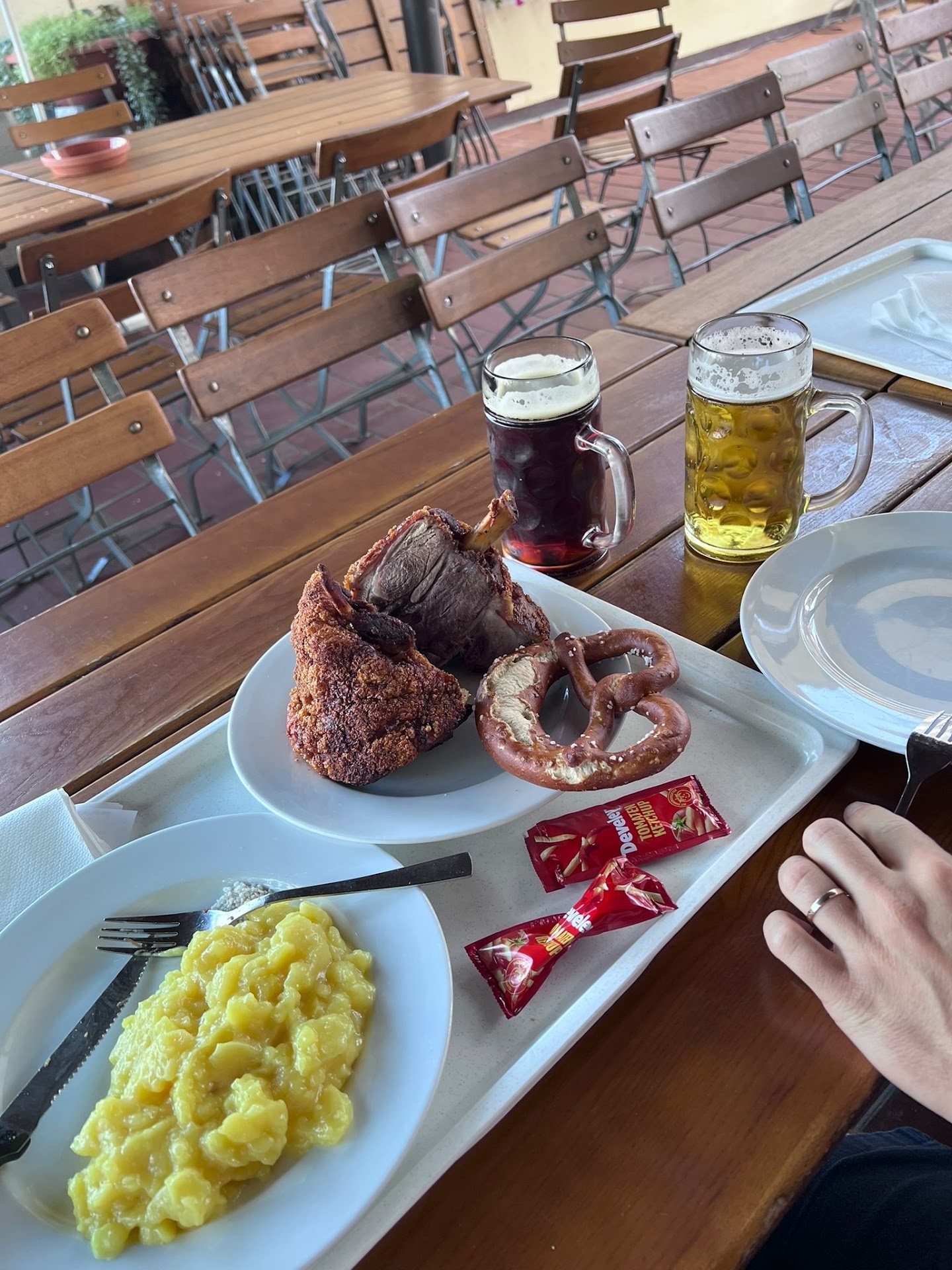 If you're in the region and want to experience what it's like to be Bavarian then this place should go to your list of places to visit. Andechs is shrouded in history and culture. There's not much choice of food but wow, it tastes like nothing else. My recommendation is a whole Haxe (pork shank) with potato salad, a large Brezen (pretzel), and a Maß (1 litre of beer) to wash it all down. Tip: Ask for some scraps as well (bits of meat and crackling that fall off when cutting joints). Scrumptious!