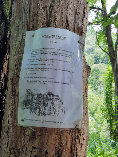 Read moreWir finden hier die Ruine des ehemaligen Klosters Sankt Antoniusstein, oder auch Kloster Tönisstein vor. Leider gibt es vor Ort als auch im Internet eher wenige Infos über das ehemalige Karmeliterkloster.