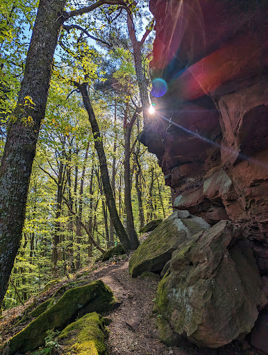 Insgesamt ein sehr schöner Weg, mit vielen Pfaden, einer tollen Felsformation und an der Rehberg-Quelle mit einem einladenden Picknickplatz.