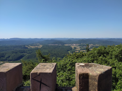 Read moreDie Ausblicke vom Rehbergturm sind herrlich - man kann weit übers Trifelsland und noch weiter über die sanften Hügel des Pfälzerwalds schauen. Vor allem auch der Blick auf Burg Trifels ist gigantisch und man kann noch weitere Burgen entdecken. Am Fuße des Turms sind zwei Sitzgelegenheiten zum Ausruhen oder Picknicken zu finden.