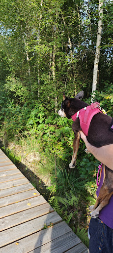 Für einen kleinen Spaziergang mal OK.Aber für Hunde nicht wirklich geeignet,gerade für kleine Hunde,da man nur auf dem Steg läuft und die Bretter teilweise zu große Spalten haben so das ab und an doch mal ein Pfötchen drin hängenbleibt.Zurück geht's an der Hauptstraße entlang,lädt auch nicht besonders die Schnüffelnasen zum Schnuppern ein.Man kann es sich mal anschauen,das reicht...