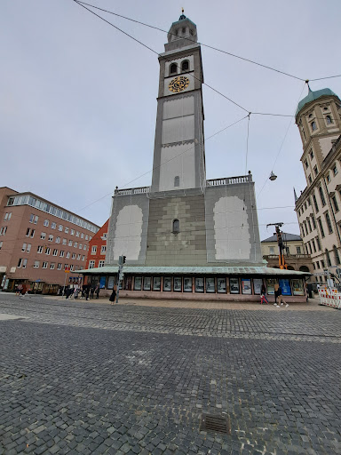 Read moreDas mit dem Perlachturm ist eine traurige Sache,wenigstens aus meiner Sicht. Er und wenige andere Objektive gehören zum Wahrzeichen der Fuggerstadt, die gerne und oft von vielen gebildeten Touristen besucht wird,die jedoch langsam immer weniger zu bieten hat: der Brunnen am Rathausplatz wartet schon seit einiger Zeit seine leuchtende Pracht wiederzukommen, der Souvenierladen im Rathaus wurde geschlossen,im Herzen der Stadt prangen die verhangen Fenster der geschlossenen Läden , das teure Pflaster der Innenstadt vom Kaugummi verschmutzt wird an vielen Stellen augebrochen und nachher mit Beton zugeführt. Die vielen Flecken auf den Gehsteig. ..ja,ja... Die Farbenvielfalt aus den Sprühdosen verunstalten unzählige Hauserfronten.DerPerlachturm ,ein wahres Schmuckstück baulicher Kunst der Renaissancestadt Augsburg, schwer beschädigt im 2.ten Weltkrieg ,wiederaufgebaut mit viel Mühe und Aufopferung ,ist nun geschlossen wegen Reparaturarbeiten die noch nicht begonnen haben.Halblose Verkleidungen des Mauerwerkes wurden seit langer Zeit mit Klebeband befestigt. Die Hinweiszettel am Eingang des Turms und an der Kirchentüre sind mit der Zeit gelb geworden .Es gibt aber noch Lichtbilder über die Stadt Augsburg aufgenommen vom schönen...