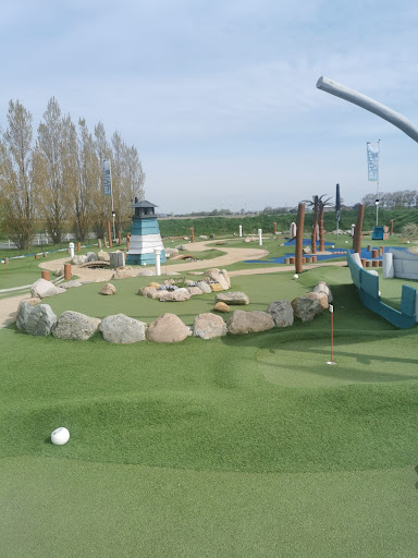 Diese wunderschöne Anlage liegt direkt neben dem Campingplatz und einer neuen Siedlung Ferienhäuser. Die Spielelemente sind sehr liebevoll gestaltet und die Bahnen echt gut aufgebaut. Auch die Spielerführung ist gut und die Bahnen sind Abwechslungsreich. Über die gesamte Anlage wird Musik mit passender Lautstärke gespielt. Wenn die Sonne scheint und es angenehm warm ist, würde ich fast behaupten kommt auf der Anlage mehr Urlaubsflair auf, als am grünen Deichstrand.