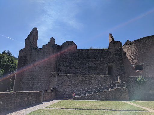 This ruin was a wonderful surprise. We came here as a party of two adults and three children ages 5,3,1.5. I wore the baby and the kids walked. The parking lot was easy to find, and signs to the castle were not very obvious but got us there, and once on the main path up, there's no way to get lost. It is uphikl but not grueling and both my older kids were able to do it without assistance,if a little complaining. That path is stroller friendly but the castle, of course, isn't. There is a little lookout right before you enter the castle which has an ok view and some seating. You enter the gate and come into a courtyard and see the ticket office, and from there you can enter the main body of the castle once you buy tickets (we only paid for the two of us adults, as the kids were free). This is when we were astounded - this castle is HUGE, with so much to see and explore, and in pretty amazing shape considering. The tower is a long climb but worth it. There aren't a ton of seats or any picnic tables throughout and I think the only bathroom is near the ticket office. There are frequent signs saying what each room was, and if I remember correctly there is a map giving more detail. The exhibits in and near the ticket office Are all in German. Nevertheless this is one of my favorite ruins so far, especially given the easy access from the parking lot. Bring snacks and water as you might be there a while. Of note, there is an awesome biergarten behind the castle, a 5 minute walk past it after you go through the courtyard and make a left UP the hill (not down). It was closed the day we came but it has ample outdoor seating and a great little play area for the kids; I hope to come back just...