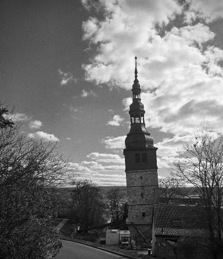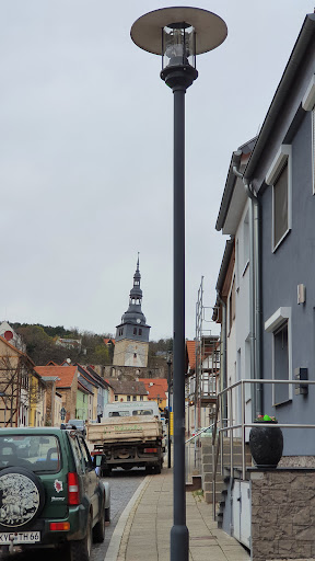 Read moreIch will mal die Gelegenheit nutzen und ein bisschen Werbung machen. Wir waren gestern dort und haben erfahren, das dieser Turm begehbar werden soll und die Oberkirche (das ist die Ruine hinten dran) wieder aufgebaut werden soll. Sie bekommt ein Dach und es sollen sogar Konzerte gespielt werden. Ist alles nachzulesen auf einer Tafel. Und zwar wenn man auf die "Kirche" zugeht, Richtung Treppe sind dort zwei Tafeln. Eine die schräg nach oben führt und dahinter eine die kerzengerade nach oben geht. Dort an dieser Tafel (die kerzengeradene) auf der Rückseite. Dort steht das alles. Aber dazu wird EURE Hilfe gebraucht. Spenden. Wenn ihr in die Touristinfo (noch am Markt neben dem Thüringer Hof, sie ziehen nämlich um) geht bekommt ihr Aufkleber für 1€ bis 2,50€ (es kommt auf den Aufkleber an). Kauft einfach mal einen. Es lohnt sich. Denn der Turm ist es Wert. Es ist für einen sehr guten Zweck. Oder vielleicht kauft ihr euch einfach ein Modell. Aus Metall. Die kosten zwar auch 30€ aber sie sind für die Ewigkeit. Geht einfach mal in euch und überlegt euch wie ihr diesem Turm helfen könnt. Dann fahrt einfach mal hin. Nehmt euch auch Zeit für den Infopunkt. Es lohnt sich. Die Leute vom Förderverein sind sehr nett. Und ohne euch funktioniert das ganze Vorhaben nicht. Bitte helft ihnen. Selbst 1€ von jedem Touri ist schon eine...