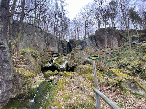 Near the road is the stone round table with 7 small boulders - a small one Reference to the legend of the Quarks from Cottaer Spitzberg (see the legend book of Saxon Switzerland by Alfred Meiche). They are said to have inhabited the dwarven cave. Irregular steps lead to this narrow crack in the rock, which is actually a cave. Here the joy of discovery is awakened by short hikes - don't forget your flashlight!