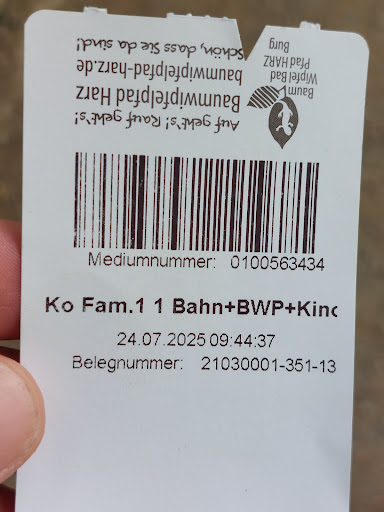 Oben angekommen gibt es nochmal eine erhöhte Aussichtsplattform. Auf dem ca 1 km langem Pfad, werden immer wieder auf Tafeln und Skulpturen lehrreiche Informationen über Natur, Harz und Geschichte geteilt. An einigen Stellen gibt es für Gross und Klein Hindernisse zu meistern, allerdings kein Muss - man kann auch alle Stellen normal passieren.