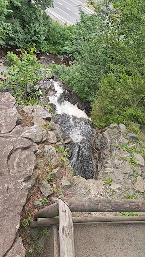Read moreEin schöner künstlich angelegter Wasserfall, der sich direkt gegenüber eines Parkplatzes befindet. Beim Parkplatz Achtung! Dort ist an der Einfahrt eine Recht Höhe Steinkante, die bei etwas tieferen Fahrzeugen Schäden anrichten kann!