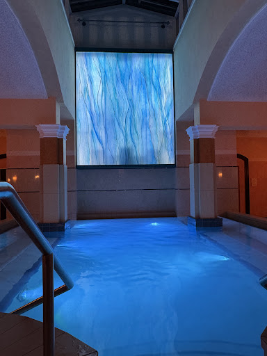 Honestly... this was one of the most lack luster experiences I have had at ANY spa. I am mainly writing this so that the management can see this and do something about it. Because the exterior and the garden are beautiful. However, once inside, there is nothing but a bunch of concrete 4 people rooms with different led lighting and led screens from the 1990's. With today's technology it could really use an update. One room is suppose to be like night time at a beach. but you can't even see the projection on the wall it's so dim. I have a better experience on my VR head set for free. If the spa really wants to go in the direction of integrating technology with bath house then they need to do a MAJOR over haul and install proper tech to really produce that immersive experience. Otherwise it is laughable. I really thought for a second I was in a hidden camera TV show how ridiculous it was. There is another room with sand that is suppose to make you '"feel" like you are experiencing the Sunrise at a beach. But you are only staring at concrete wall with a painting of the beach and a light show that switches from reds to blues and they have one leko shining that on the wall that is suppose to represent the sun setting. If this is the immersive direction they want to go in the owners should really visit some real immersive experiences like super blue or meow wolf and get ideas on to how to really incorporate technology into an immersive experience. Otherwise they should just gut it and focus on the actual treatments and provide more actual bathing spots. This one only features ONE small bath water temperature saline pool with NO JETS!! Like WHAT! Even the most basic spas and bath house have at least 2 temperatures like an actual hot whirl pool with Jets. And others have cold plunges as well. This only has the one pool with no jets. I have been to many bath house across the globe from Costa Rica to Barcelona and this has been the worst one for the price point 30 euros "during their happy hour" In Germany I visited one in Baden Baden that was pretty amazing. I thought this would be similar. I really hope the management sees this and gives this dated place the refresh...