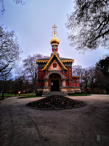 Read moreDer russische Geheimrat Alexander Proworoff, auch bekannt als Homburger Rosenkavalier, überzeugte den damaligen Homburger Bürgermeister, ihm am Rande des Kurparks ein Grundstück zur Verfügung zu stellen und kümmerte sich anschließend in St. Petersburg um die Finanzierung. Entworfen wurde die Russische Kirche von Louis Benois, einem Architekten des Zaren Nikolaus II., der im Oktober 1896 dann auch zusammen mit Kaiserin Friedrich den Grundstein des Gotteshauses legte. Drei Jahre später wurde die Russische Kirche als Allerheiligen-Kirche geweiht und ist bis heute das religiöse Zentrum der russisch-orthodoxen Gläubigen in Bad Homburg...