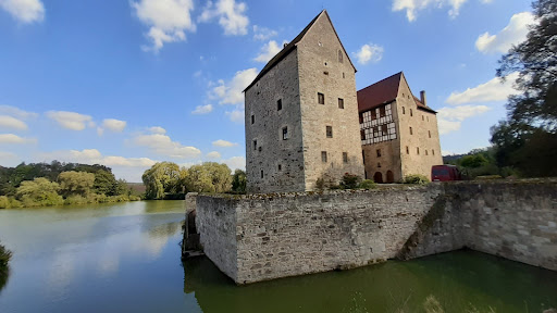 Read moreNur eine schmale asphaltierte Straße führt zu diesem Kleinod in Privatbesitz. Wobei von klein eigentlich nicht die Rede sein kann. Das Wasserschloss ist schon ein mächtiger Bau, der top erhalten ist. Die Lage ist absolut idyllisch, die das Gewässer umgebende Parkanlage bestens gepflegt. So kann der Besucher Schloss und See gefahrlos umrunden. Während wir von Sulzdorf per Auto zum Schloss gefahren sind, haben wir dort viele Radfahrer und einige...