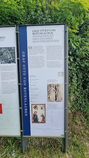 Die Burgruine Botenlauben oberhalb von Bad Kissingen wurde erstmals 1206 erwähnt,als Ansitz des Grafen Otto von Henneberg .Die Burganlage erstreckt sich über etwa 110 m in der Länge und ist 30 m Breit .Die Würzburger Furstbischöfe nutzten die Burg als Verwaltungsmittelpunkt für das neugeschaffene Amt Botenlauben .Im sogenannten Bauernkrieg von 1525 wurde die Burg stark beschädigt durch den "Aurarer Haufen ", der Sage nach liess der verräterische Burgkoch den Bauern Einlass ,diese belohnten ihn jedoch nicht mit Geld ,sondern Töteten ihn . Seitdem geht sein Geist in stürmischen Nächten umher . Spätestens seit dem 17Jhr diente die Burg Botenlauben ,trotz Verboten den Einwohnern von Reiterswiesen als Steinbruch ,bis König Ludwig I von Bayern 1830 die Zerstöungen...