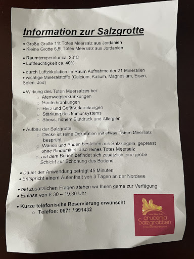 Read moreDie unfreundliche Dame, natürlich ohne Namensschild war sowas von unfreundlich. Nachdem Sie uns abkassiert hat, hat Sie zu uns gesagt, wer noch zur Toilette möchte, bitte dorthin, wo sich auch Wartebereich befand mit acht Stühlen, wir natürlich dahin, dann hieß es auf einmal nein wir dürfen noch nicht rein, erst wenn andere draußen sind, also standen wir wie die blöden im dem Weg, denjenigen die zum Schwimmbad wollten, als paar Leute dann draußen waren, sind wir wieder rein gegangen, dann hieß es wieder , wenn ich gesagt habe draußen bleiben, dann heißt es draußen bleiben. Also diese Person hat definitiv ihren Beruf verfehlt, so geht man mit Kundschaft nicht um!!! 😡Dann ging es zu Grotte…..für Jacken, Taschen, Regenschirme etc.war nichts vorhanden wo man es ablegen konnte, also mussten wir alles auf den salzigen Boden legen 🤦🏻♀️. Aufklärung, ach wofür…….will man was über die Grotte wissen, frag Dr. Google oder Infoblatt paar Tage vorher abholen wo noch nicht mal Preis drauf steht, geschweige ein kurzes Info für die jenigen die Reha machen, dass man an Kurkarte denken soll, weil man 10% Rabatt bekommen würde, also haben wir voll zahlen müssen . Ende vom Lied, wir sind in die Salzgrotte rein, hinlegen fertig. Wer früher raus möchte, kein Problem, ansonsten dauert es 45min. Licht wurde gedimmt, dann gute Nacht.„Ich wünsche Ihnen ein schönes entspannen „ war anscheinend zu viel verlangt. Die Liegen dadrin werden auch NICHT desinfiziert 🤦🏻♀️...