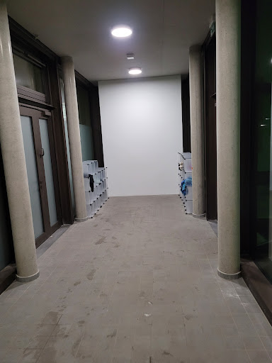 Eingang groß - keine Bank, um vor oder nach dem Besuch auf Freunde oder Familie zu warten, nur Gastronomie. Dafür Blick ins Bad ...