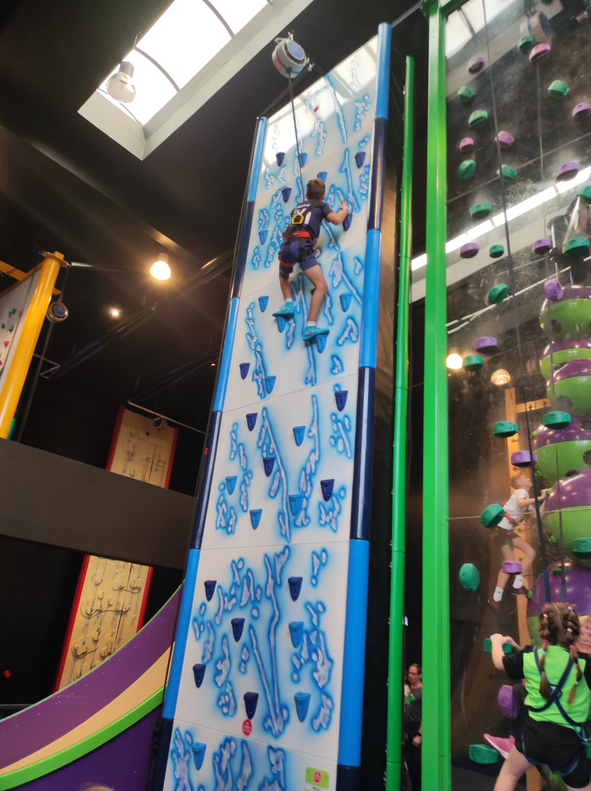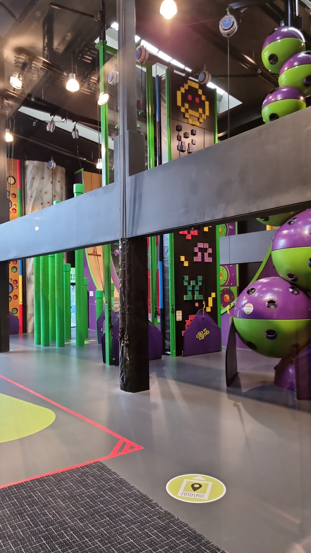Read moreWir waren hier zum ersten Mal zum 12. Geburtstag meines Sohnes mit 6 Kindern. Die Online-Reservierung war schnell erledigt und prompt bestätigt. Als wir angekommen sind würden wir freundlich empfangen und alle Teilnehmer haben bunte Armbänder bekommen. Ein Schlüssel für ein Schließfach zur Unterbringung von Wertsachen wurde auch überreicht Nachdem sich alle in den vorhandenen Umkleidekabinen umgezogen haben, ging es zur Sicherheitseinweisung, In diesen ca. 30 Min. wurden die Klettergurte angezogen und die Funktion der Sicherheitshaken verständlich von einem Trainer erklärt. Die Trainer begleiten die Teilnehmer in die Kletterhalle und stehen jederzeit mit Tipps und Ratschlägen zur Seite. Die 26 Kletterelemente können in verschiedenen Schwierigkeitsstufen in absolviert werden und sind für Anfänger und erfahrene Kletterer geeignet. In der Kletterhalle gibt es einen Wasserspender an welchen man sich jederzeit bedienen kann. Die 90 Minuten Kletterzeit waren ausreichend. An einem Bildschirm kann man jederzeit die Restzeit der verschiedenen Gruppen ablesen.